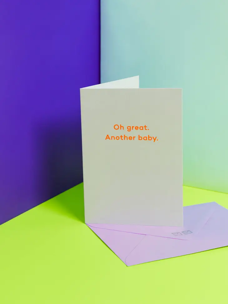 You’re so selfish. 350gsm FSC certified light grey card debossed with neon orange foil. Comes with a lilac envelope. The card is 14.8cm x 10.5cm (A6) in size and is blank inside.