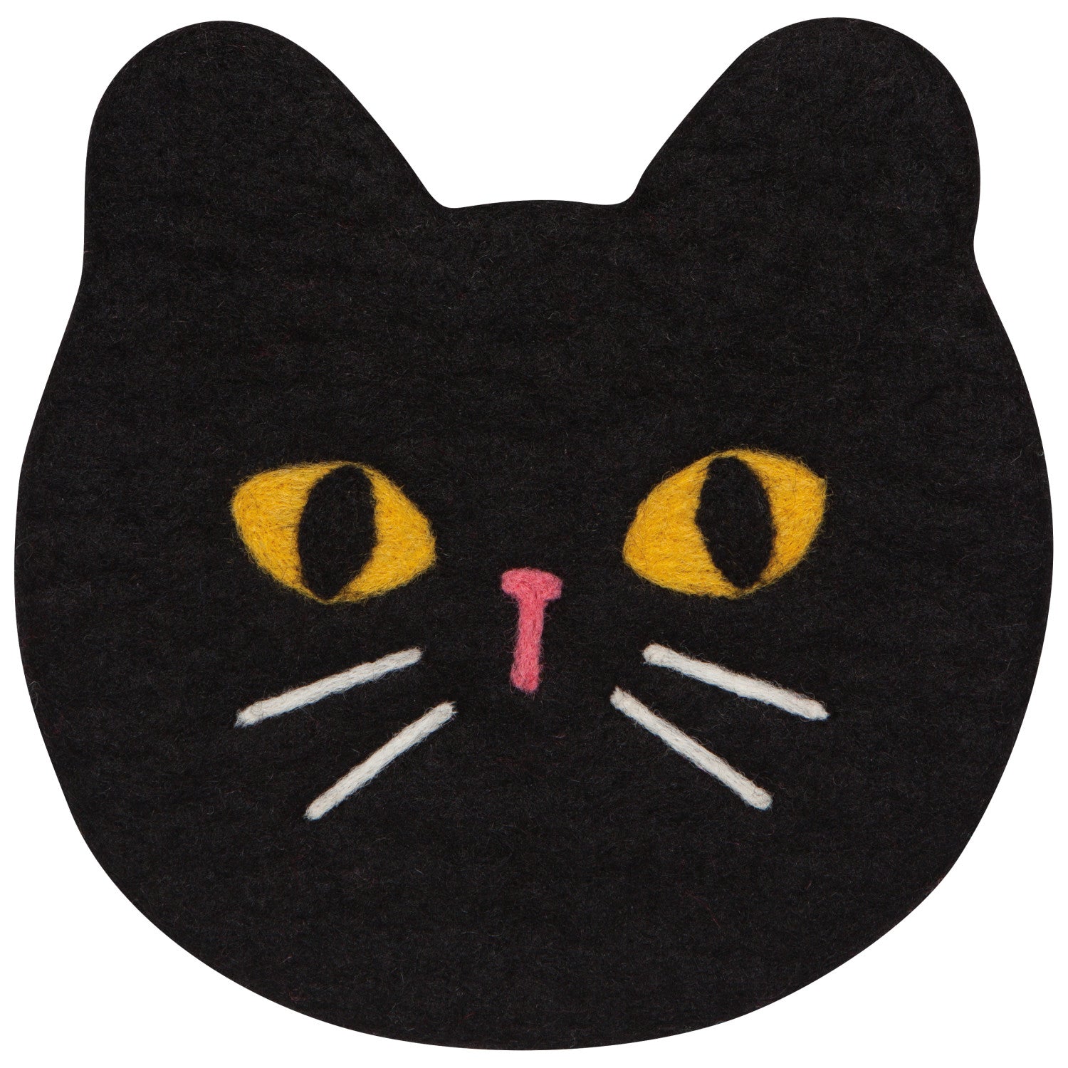 Hot pots and kettles get a soft, sturdy place to land with the Black Cat felted wool trivet. This trivet beautifully blends durability, absorbency, and bold color. This certified Fair Trade felt trivet is handmade in Nepal.With mischief and mirth shining from its eyes, it casts a spell with the strength of its sparkling stare in this design from the Black Cat collection.