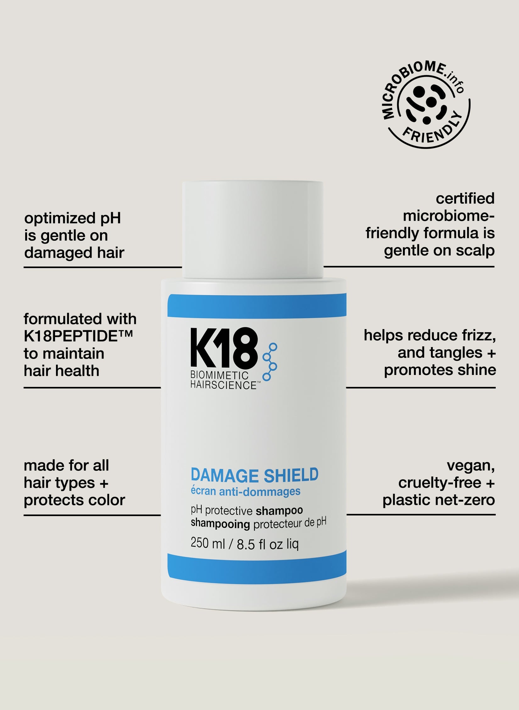 Certified microbiome-friendly formula removes dirt and oil without disrupting the scalp’s natural protective barrier K18PEPTIDE helps reduce protein loss to keep hair feeling healthy and strong