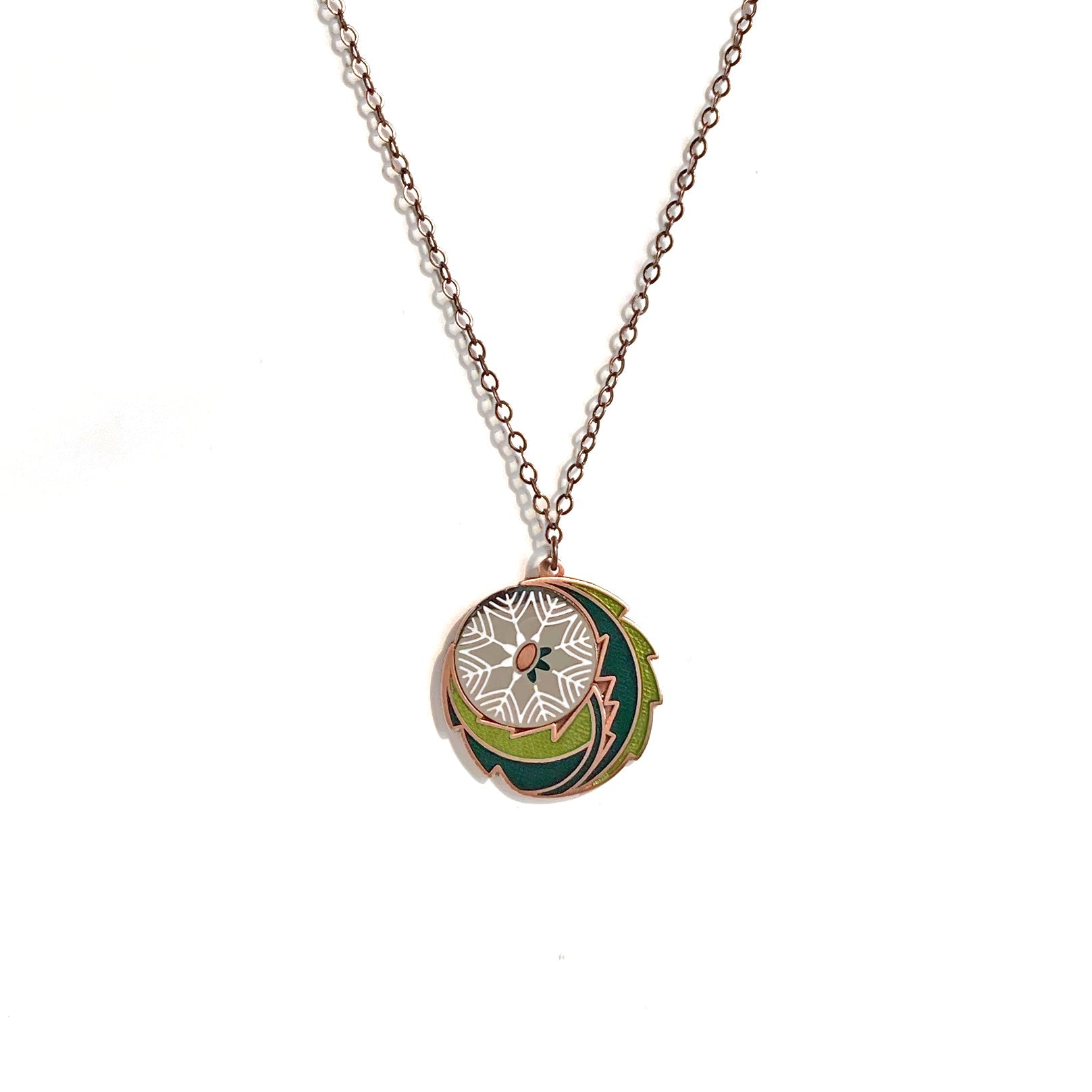 enamel pendant set with 2-tone silver and antique copper finish