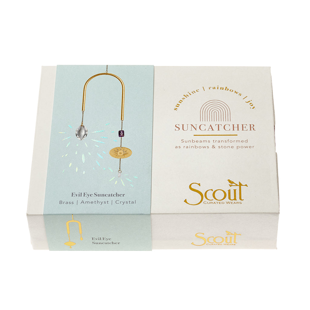 Captured sunlight transforms into beautiful rainbows that spread joy. Crafted from brass, semi precious gemstones and crystal.