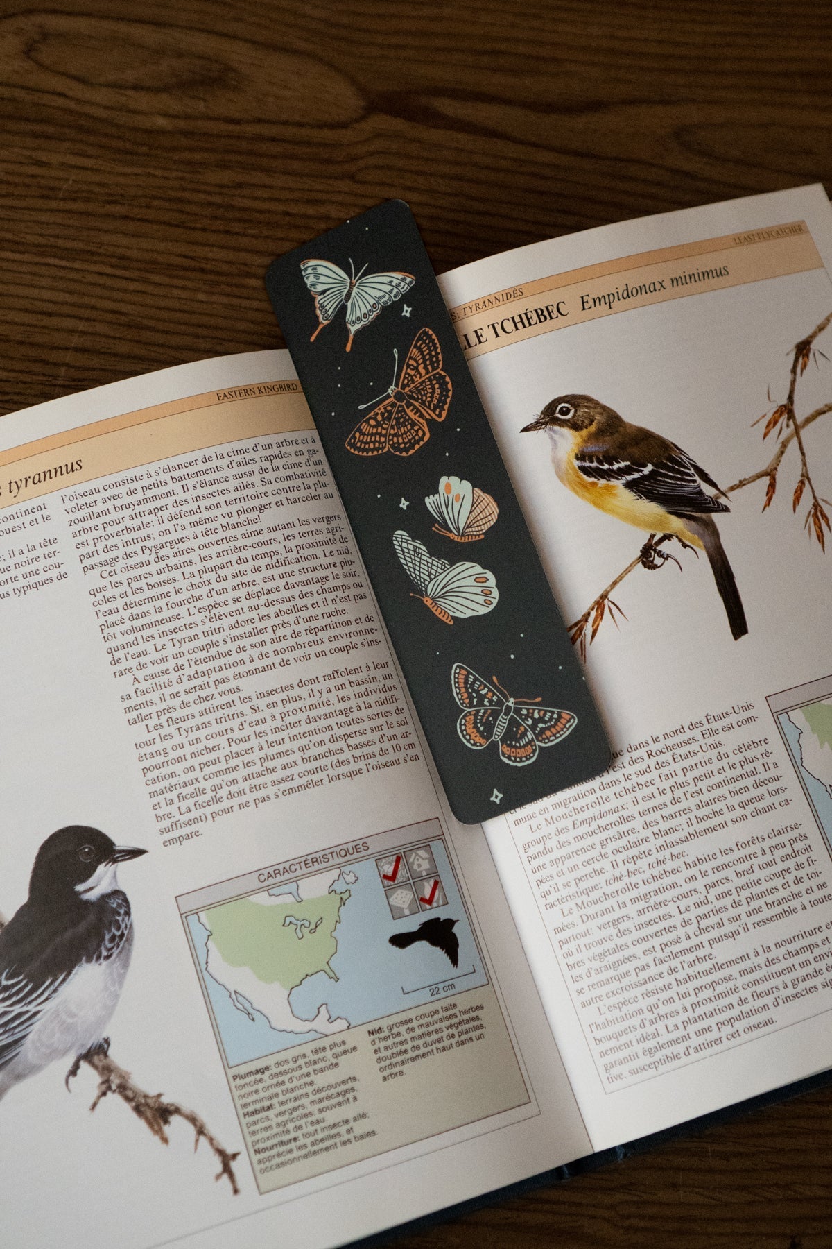 2"x7" bookmark made sturdy 20pt textured matte card with pretty rounded corners and gorgeous quality, full colour print o both sides.