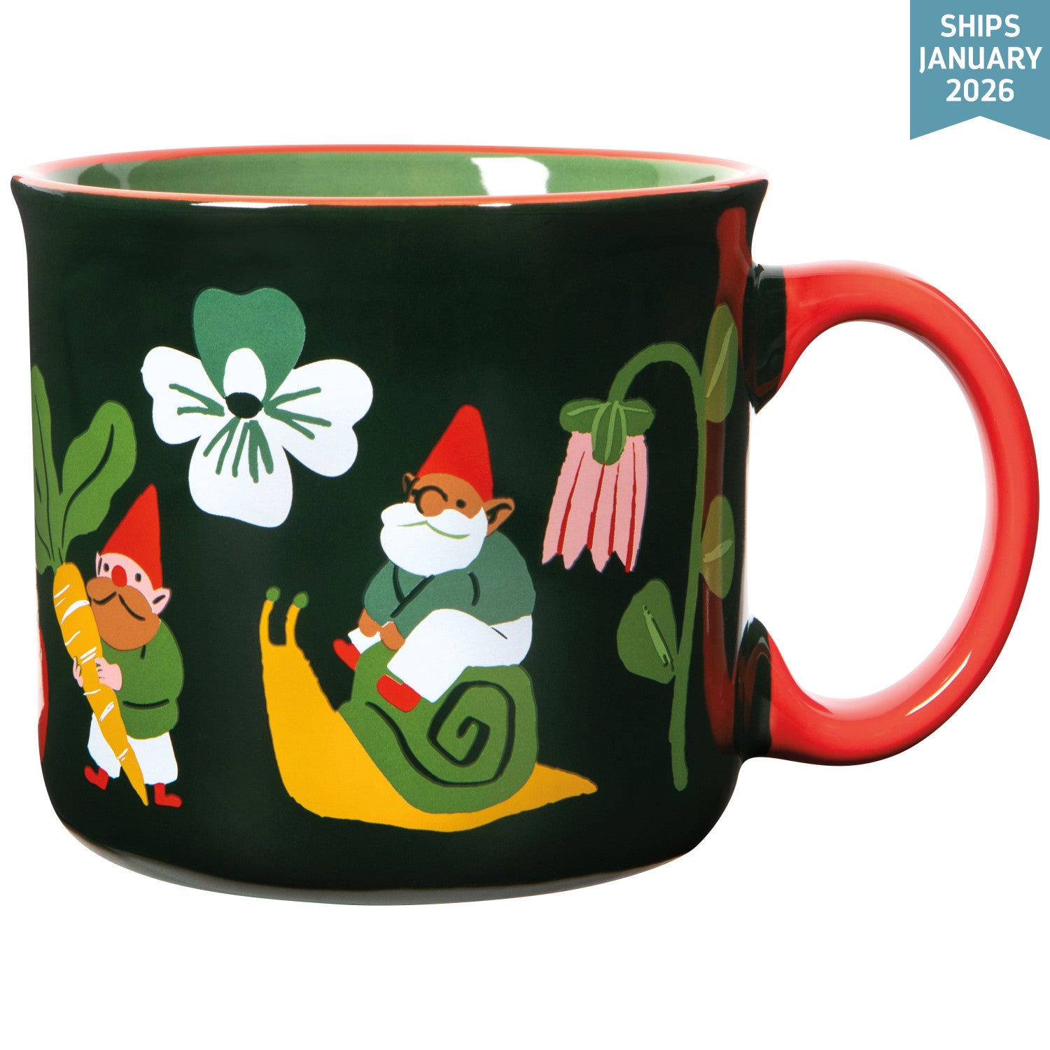 The reimagined Gnome Grown Wander Mug is a nod to the classic enamel camping mug. This generously sized 20 oz mug is made of durable stoneware designed to delight and go the distance. Enter the enchanting world of Gnome Grown! Delight in the hidden magic of the garden, where red-capped gnomes, industrious snails, and a canopy of bright blooms bring a nostalgic, storybook charm to every piece.