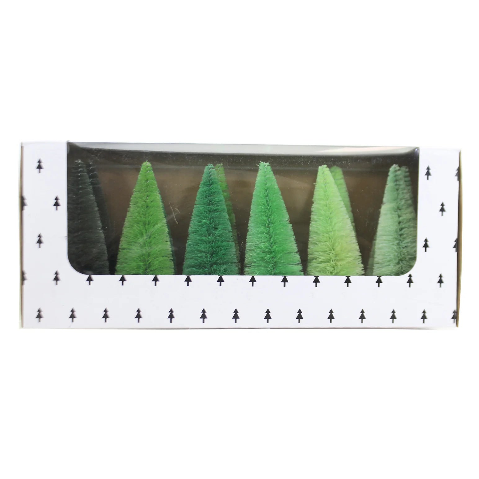 Set of 12 - 5" Bottle brush trees with wooden bases in complementary colors.