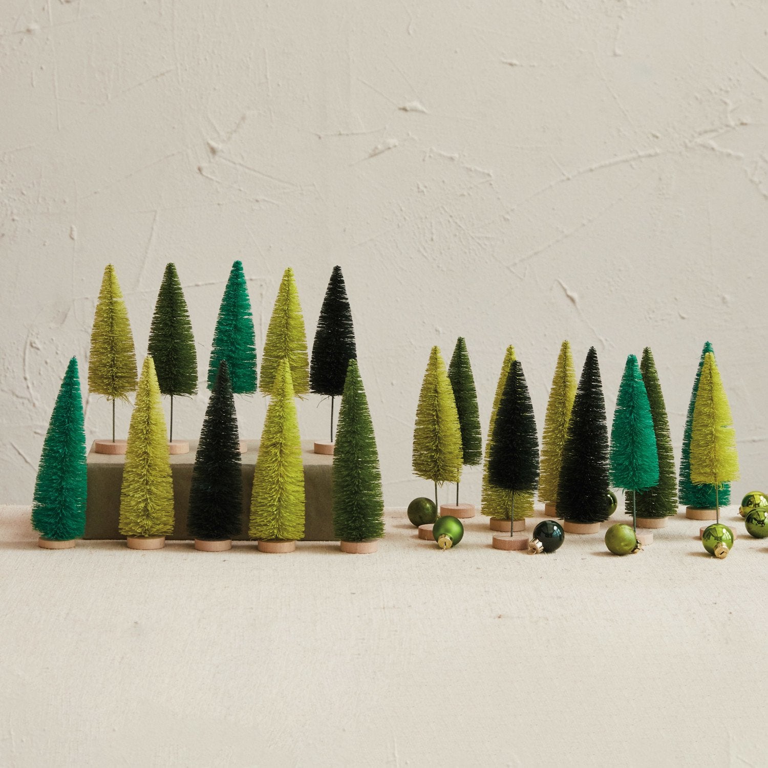 Dimensions: 1-1/2" Round x 6"H Sisal Bottle Brush Trees w/ Wood Bases