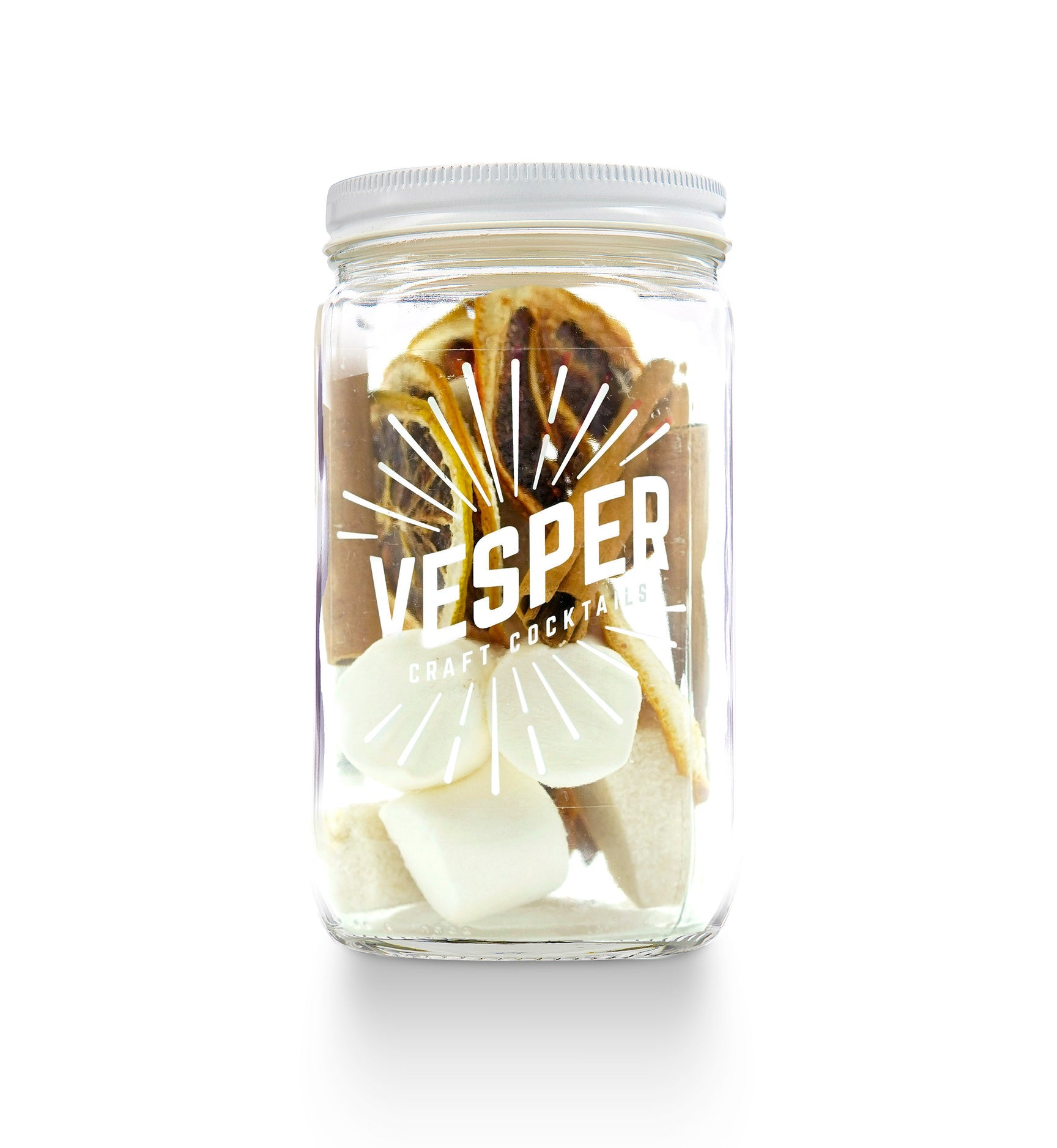 Cocktail Kit includes: ready for infusion 32oz glass jar with Marshmallows, Lemon, Cinnamon and Citrus Infused Non-GMO Vegan Cane Sugar.