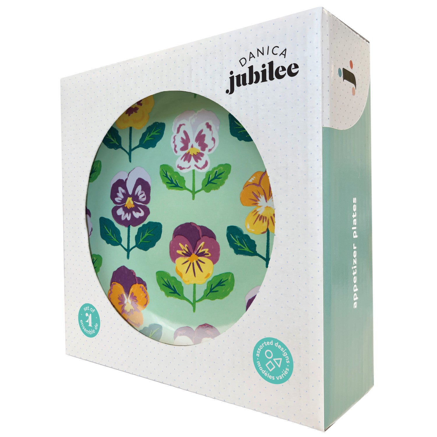 Welcome spring with the Pansy appie plates set! Playful blooms, stalky stems, and a burst of purple, yellow, and green celebrate the hearty flowers that lead the way into a fresh, new season.