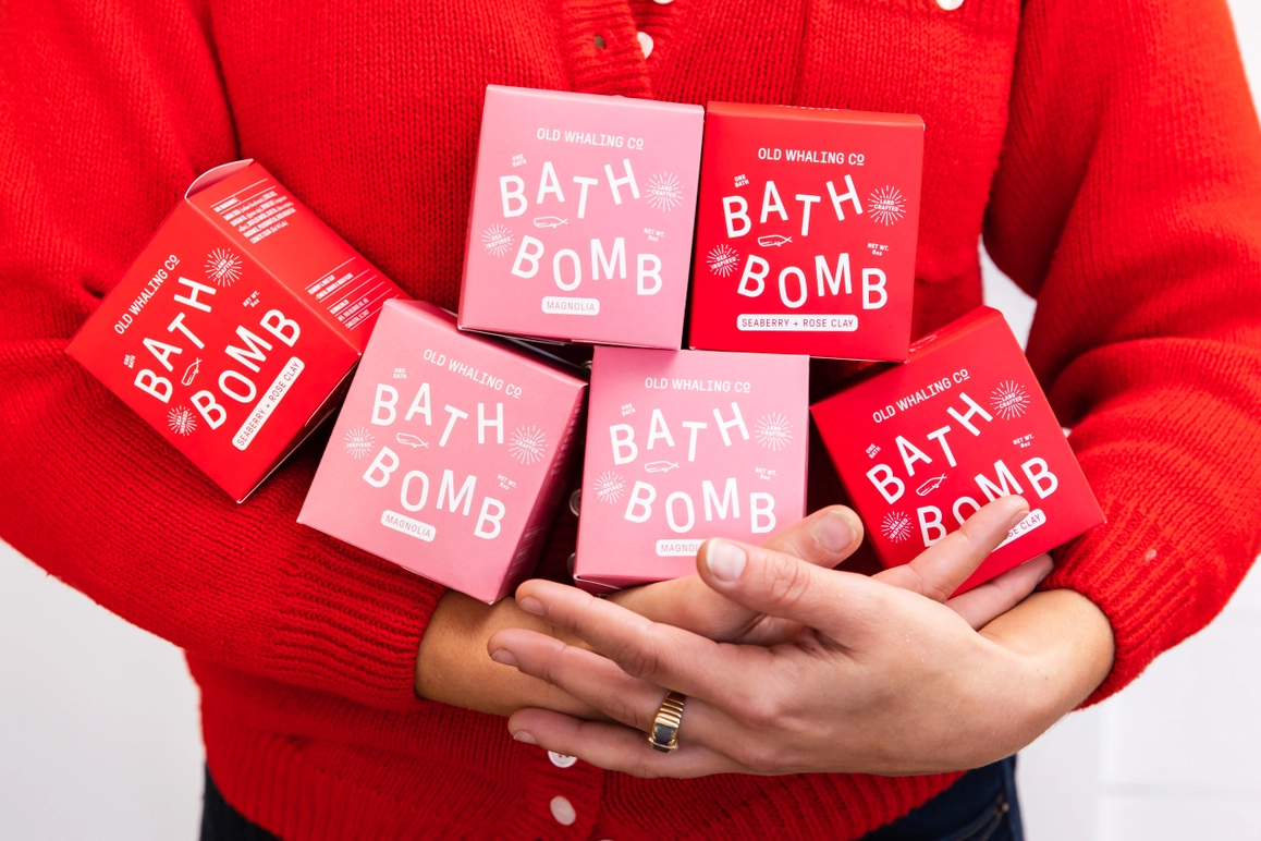 Handmade with baking soda, citric acid, epsom salts, olive, and soybean oil, each Old Whaling Co. 8oz bath bomb will leave your skin feeling moisturized and lightly scented. Our handcrafted bath bomb's soothing fizz and sea-inspired fragrance are perfect for a relaxing soak, rejuvenating the senses and cleansing the skin.
