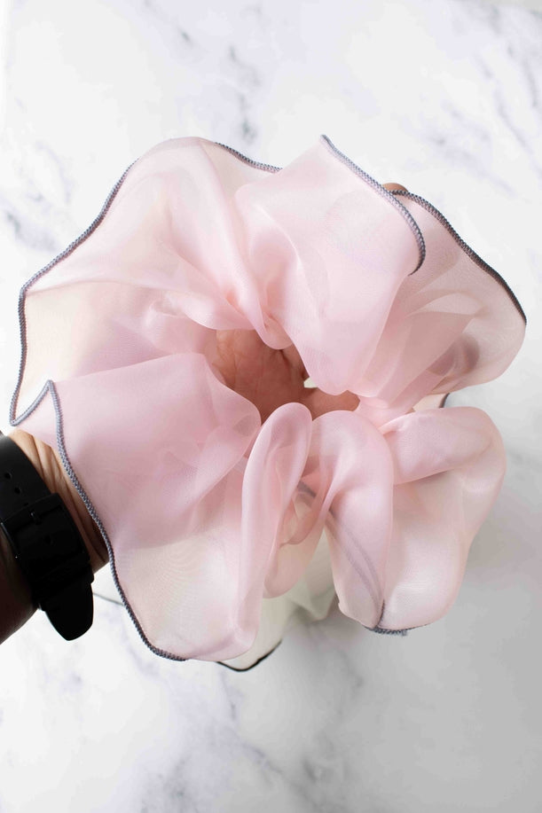 Light as air and effortlessly graceful — these oversized scrunchies are made from delicate organza fabric that adds a dreamy volume to your hair. Each piece is finished with a subtle contrast edge that outlines its cloud-like shape, making it a chic accessory for any occasion.