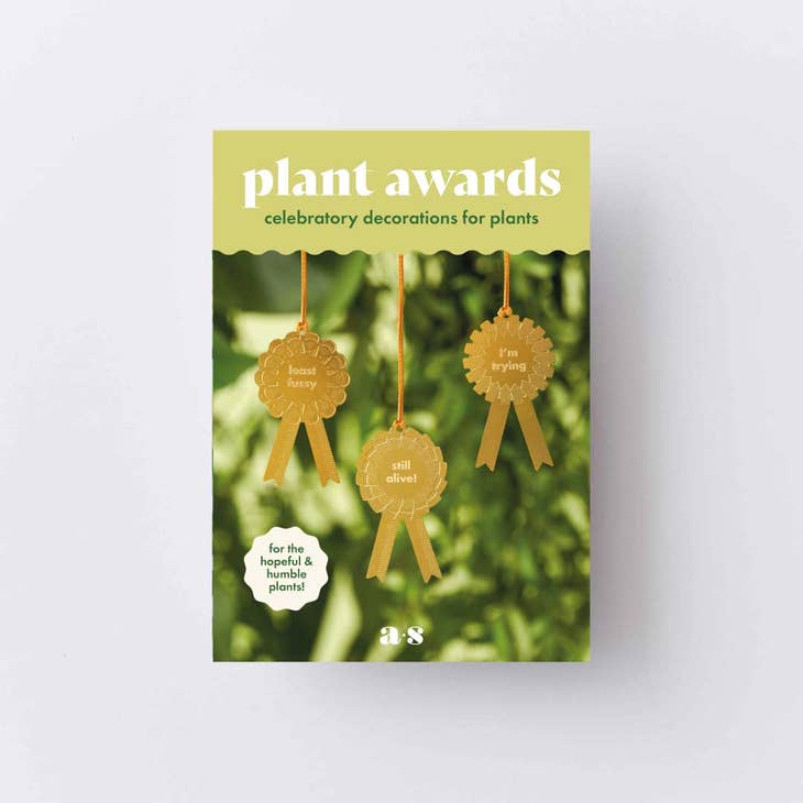 Plant Awards are celebratory decorations for plants. Use them to award your plant's progress, problems and personality traits. The awards come on a flat sheet and will need a gentle twist to free them, string is provided for attaching to a plant.