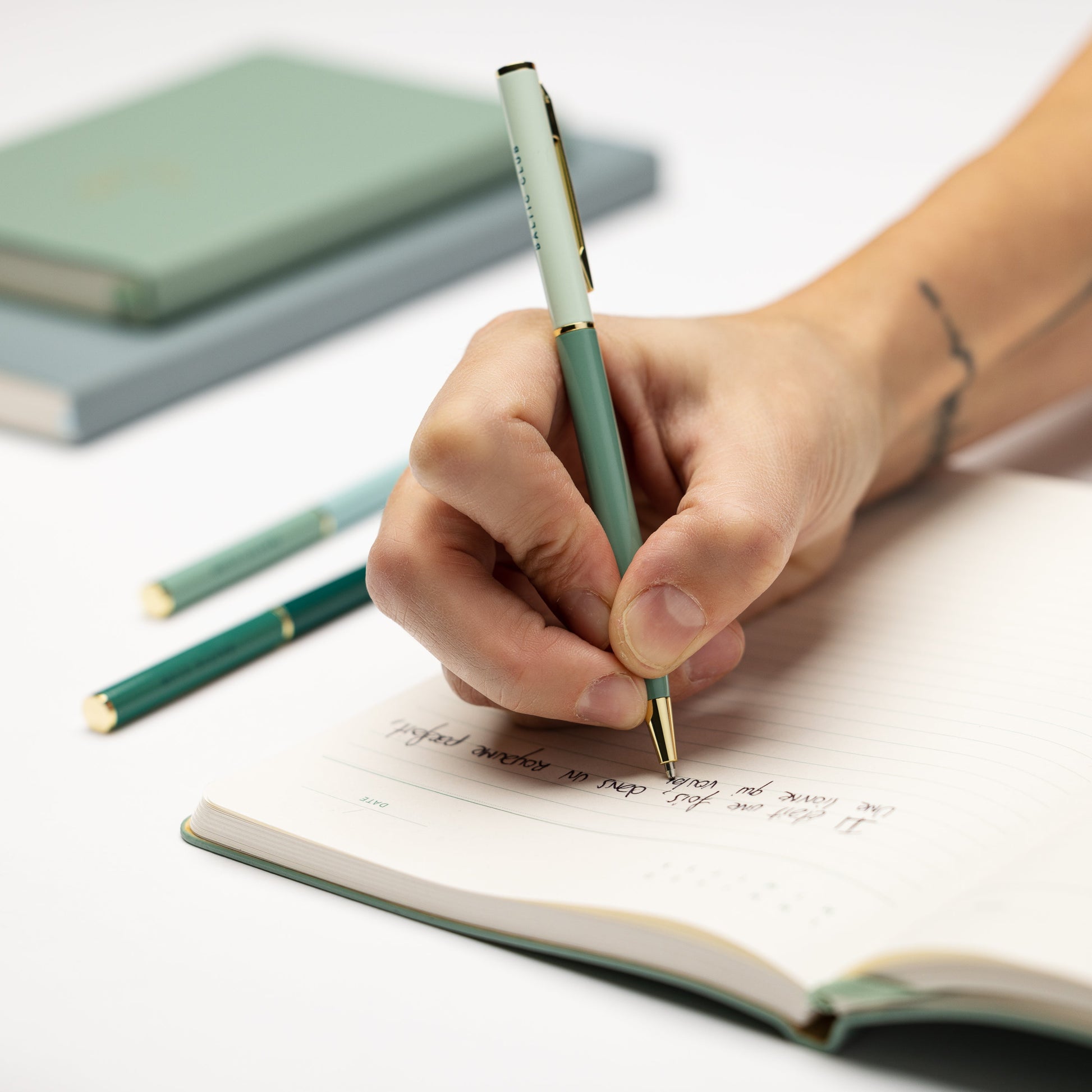 The sleek and sturdy design of these pens makes them perfect for those clever notes and sketches. It's got everything you need to make your ideas come alive. Each ballpoint pen is designed with a 2 colours metal frame with gold accents. The slim body carries a neat yet contemporary vibes