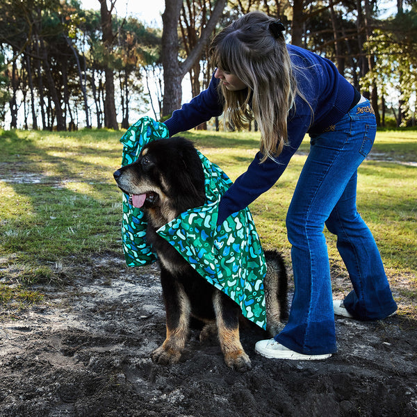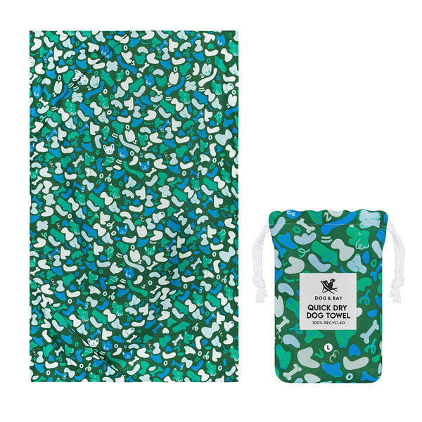 Size Guide: Large Dog Towel Measures 47" x 27" , Pouch Measures 8" x 5"
