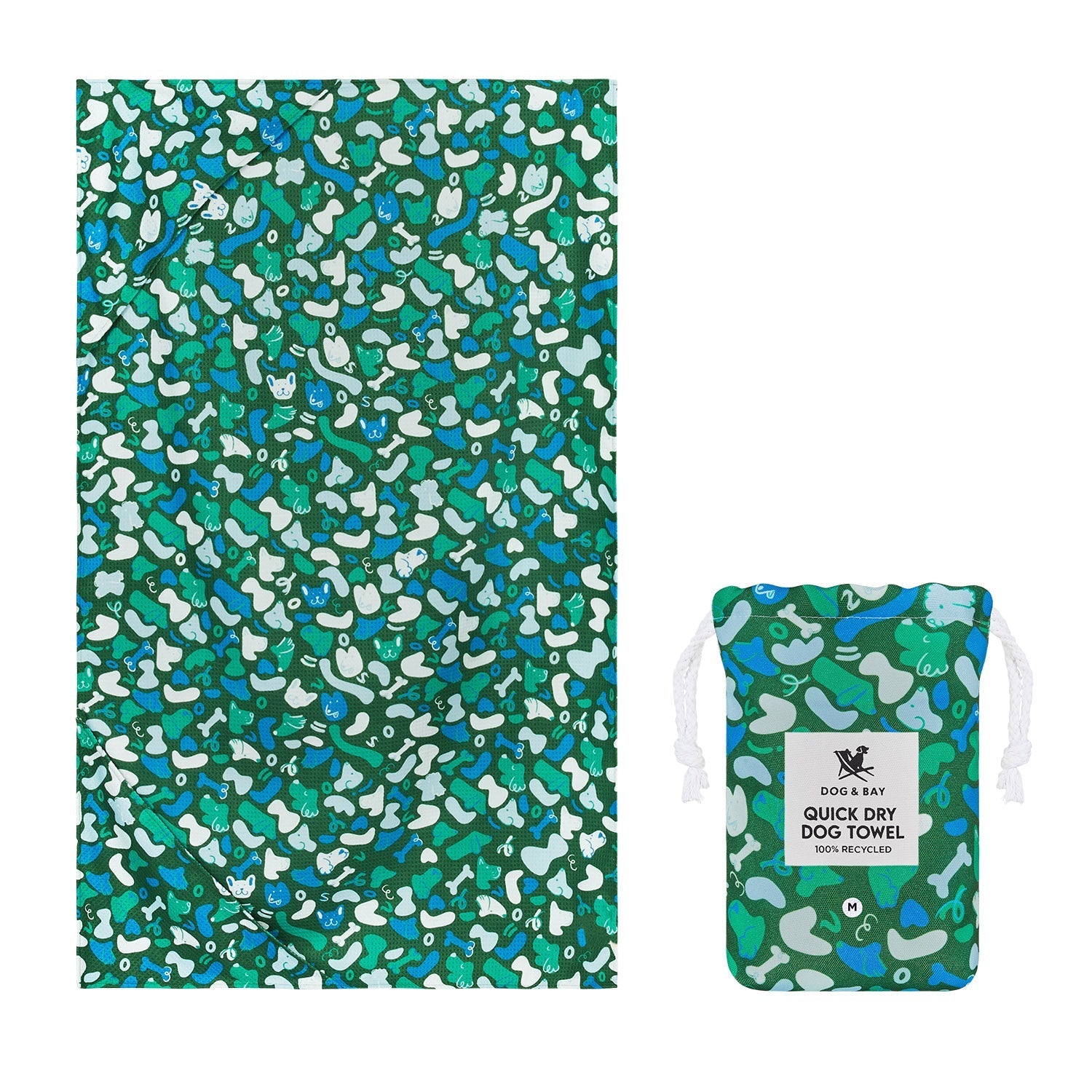 Size Guide: Small/Medium Dog Towel Measures 35" x 19" , Pouch Measures 6" x 4"